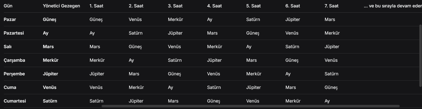 2. saat: Venüs saati. Nakıs (kötü) ve hayırsız saattir. Dikkat edilmeli.